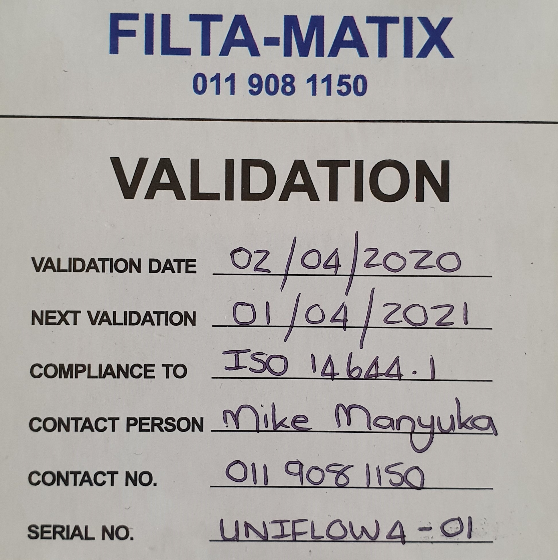- Filter serial number